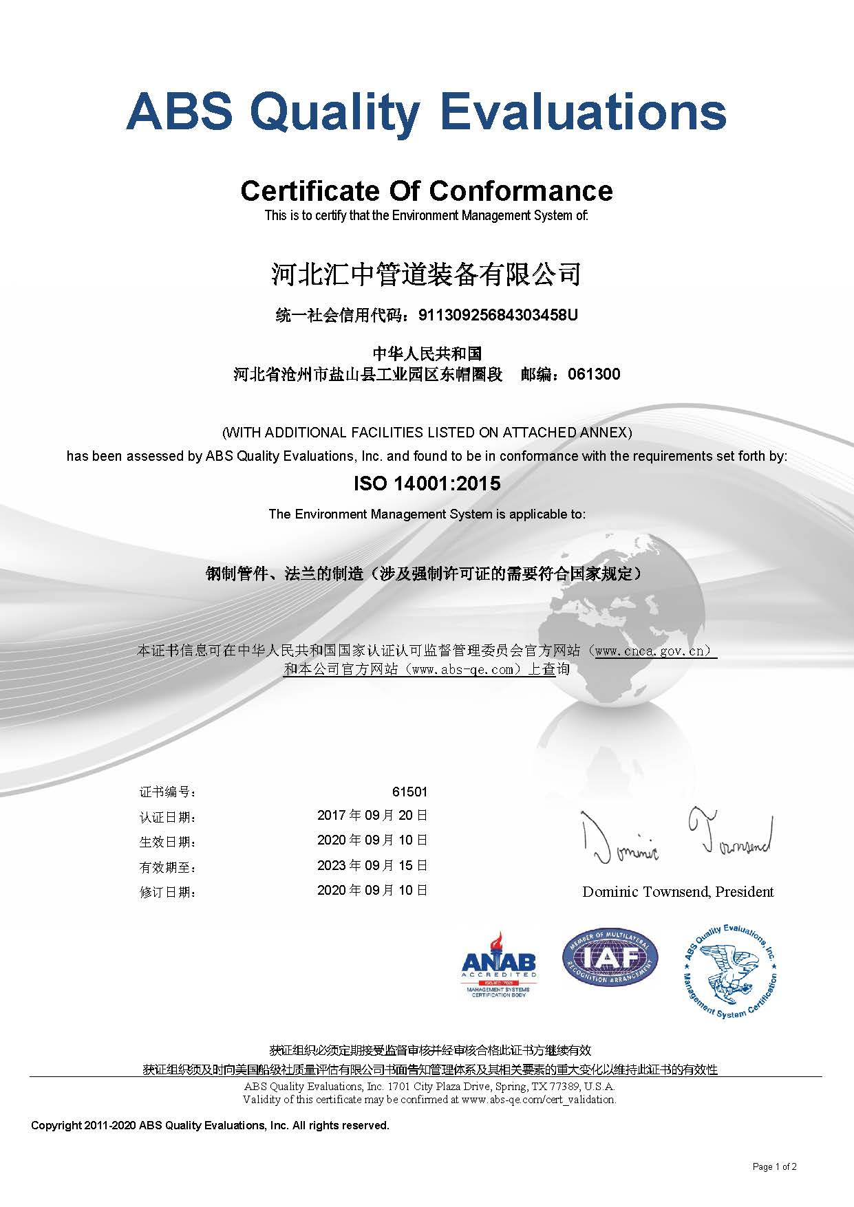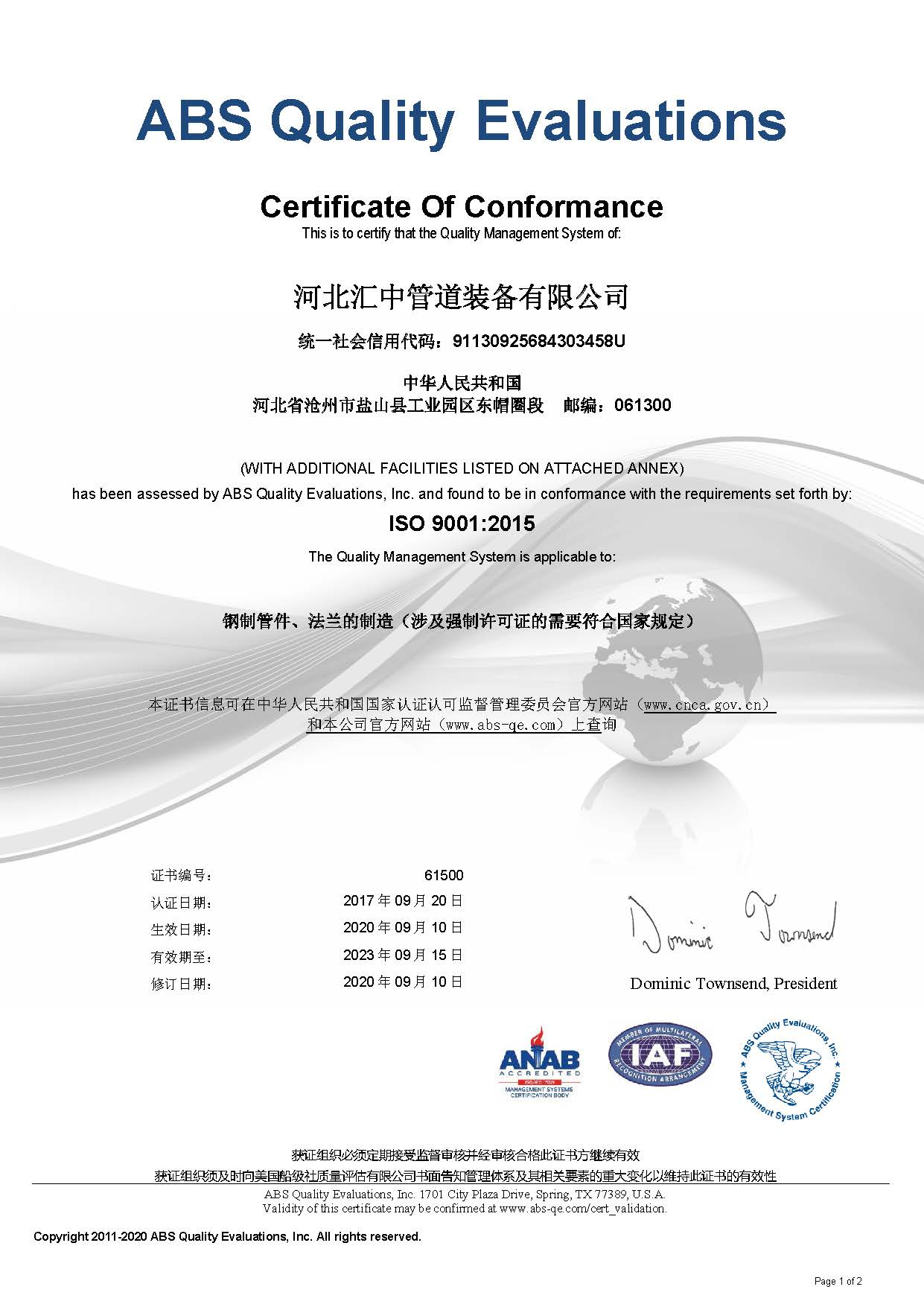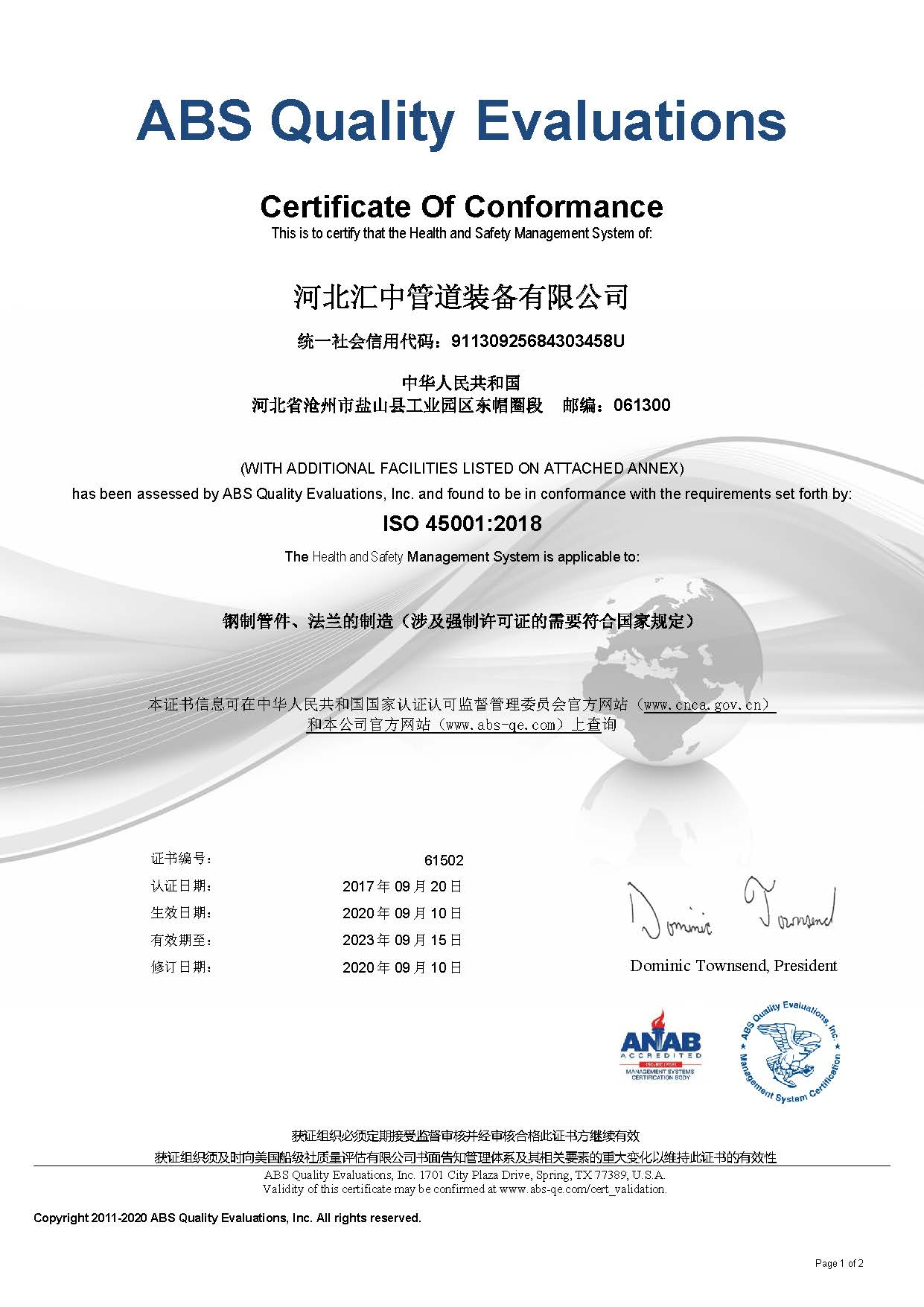 我公司通過美國船級社ABS ISO9001/14001/45001三體系認證